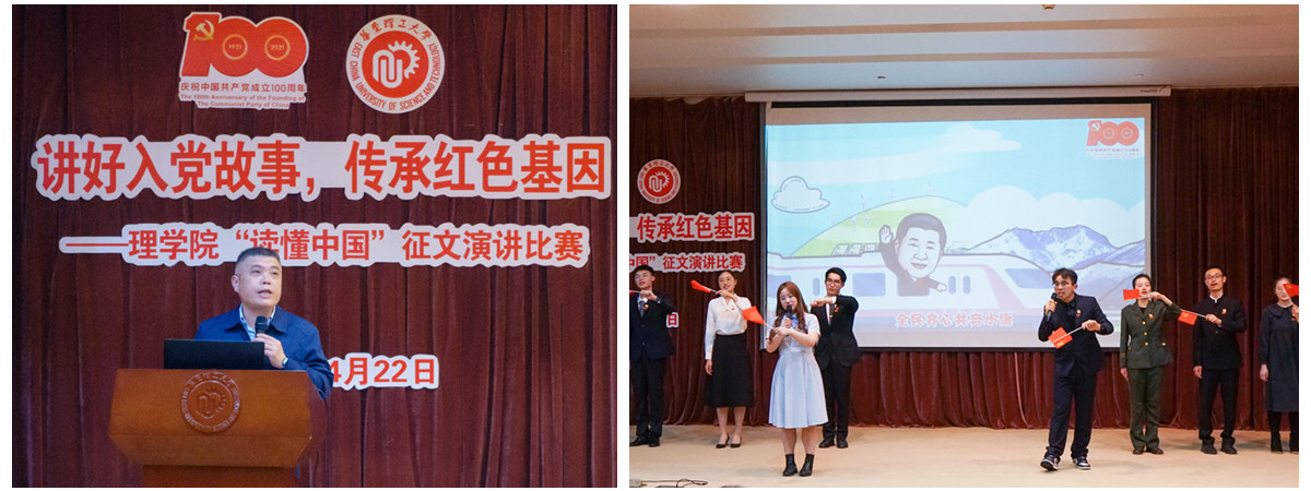 为庆祝中国共产党成立100周年,进一步加强党史学习教育,继承优良传统,赓续红色基因,4月22日,理学院在奉贤校区敬贤堂举办“讲好入党故事,传承红色基因”——“读懂中国”征文演讲比赛主题团日活动。副校长李涛、校团委书记侯宇、理学院党委书记童之敏、党委副书记王莉、团委书记李莹、青年教师代表、各年级辅导员及各团支部学生代表参加了本次活动。