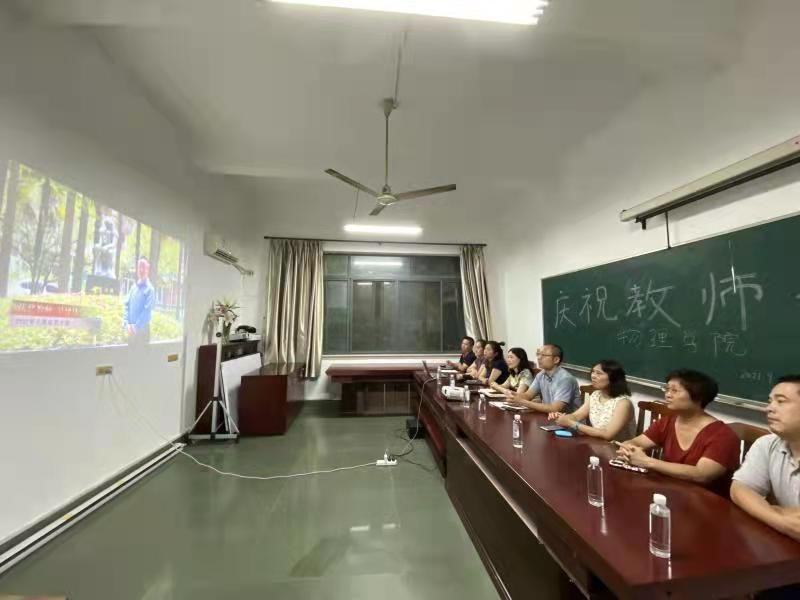 2021年9月10日下午,华东理工大学隆重举行了主题为“赓续百年初心,担当育人使命”的教师节庆祝大会。PP电子官方网站王莉副书记,张孟副院长携新、老教师代表在实验二楼213室分会场通过视频参加庆祝大会。