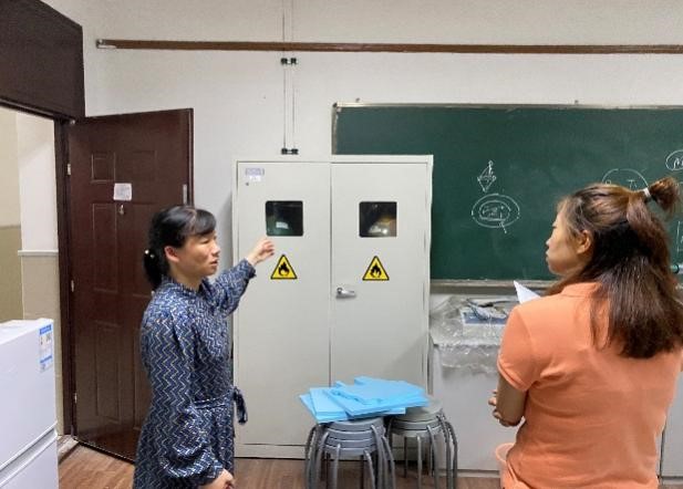 9月13日下午,钮月萍书记、罗锻斌老师对实验二楼的部分实验室进行了自查。就各实验室暑期的运行情况、各类台账、化学品清单、安全防护等进行了详细的了解。同时,针对发现的问题和隐患,布置了相关的整改落实要求。