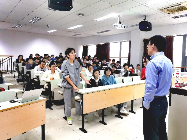 报告结束后,同学们踊跃提问,“上课听不懂怎么办?”,“如何做好个人规划?”,“液晶的状态是什么?”“光子计算机和量子计算机的区别在哪里?”,“光学读研方向怎样选择?”等,表现出对物理学习研究的热情和对大学职业生涯规划的积极性。郑老师对同学们的问题一一耐心解答,希望同学们在大一能够踏实学习,打好基础,大二争取进入导师课题组进行项目研究,同时注意培养科学研究兴趣、保持兴趣,这样才能做好科研项目,实现科技报国的理想。