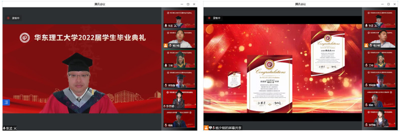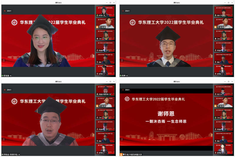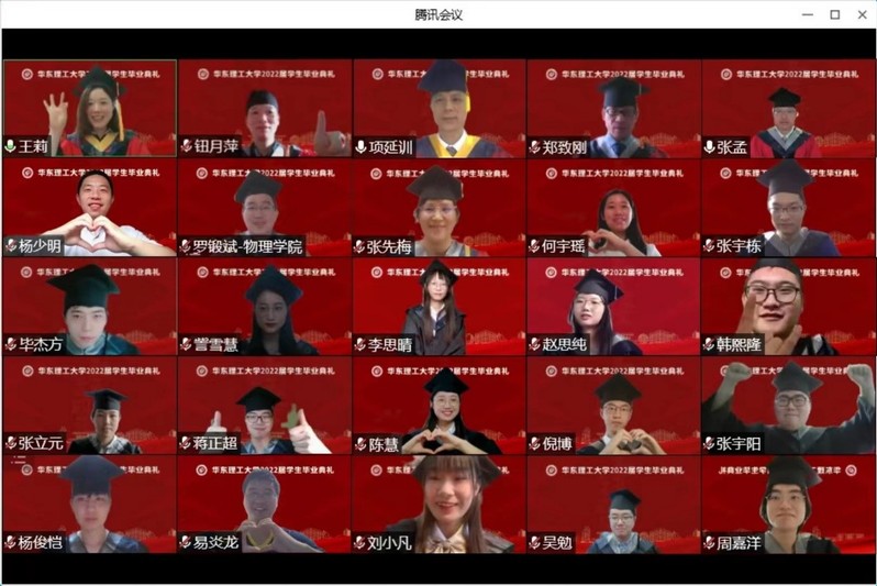 至此,华东理工大学PP电子官方网站2022届学生毕业典礼在校歌中走向尾声,教师及毕业生们在“云端”留下集体合影。灿烂笑容见证韶光熠熠,挥手告别助力未来可期!