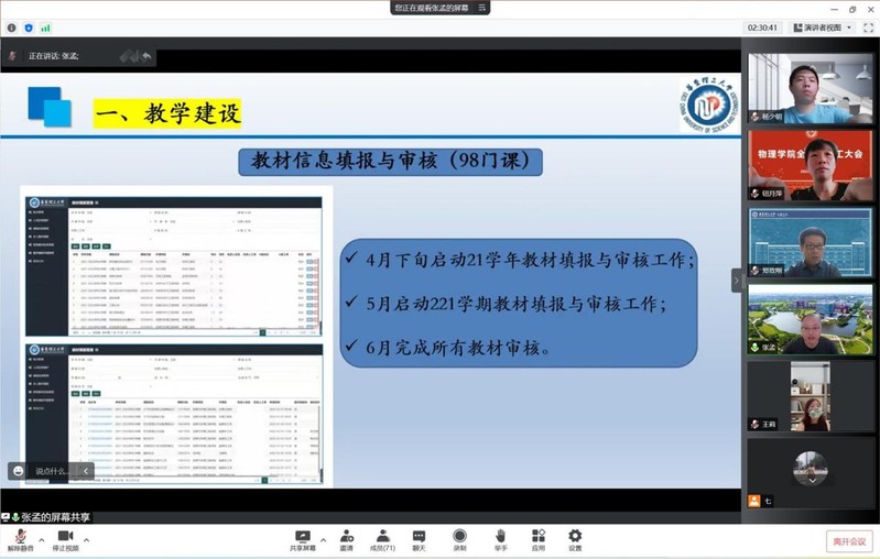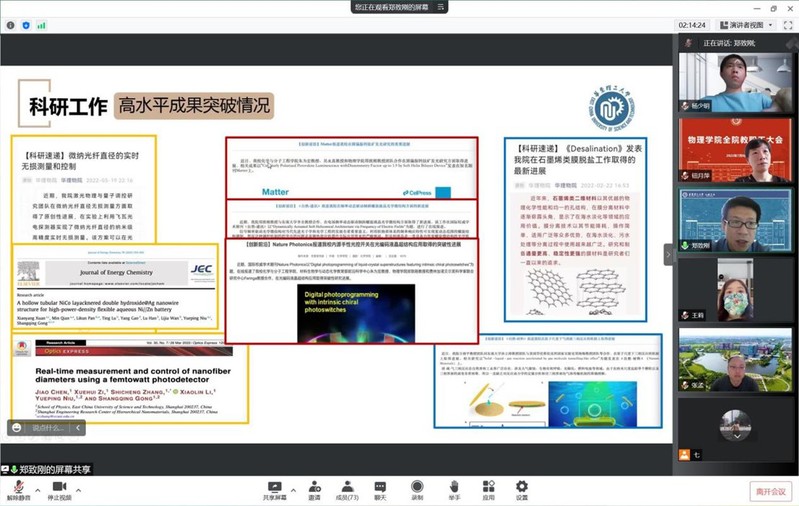 2022年7月8日下午,PP电子官方网站召开全体教职工大会,对学院2022年春季工作进行全面总结,并部署下半年要点工作。会议由学院副院长(主持工作)郑致刚教授主持,院党委书记钮月萍教授,党委副书记王莉,副院长张孟副教授及学院班子成员和全体教职工共计80余人参加会议。由于疫情防控需要,会议采取线上会议的方式召开。