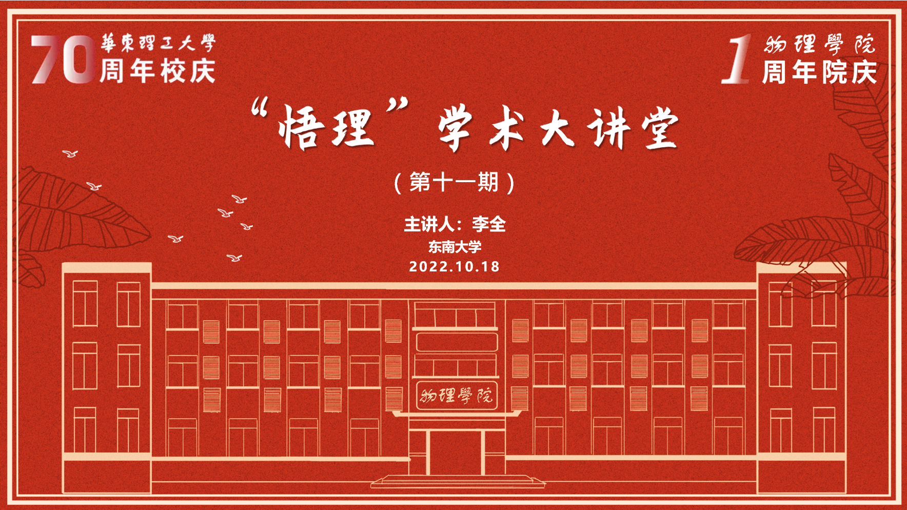 10月18日,为庆祝华东理工大学70周年校庆暨PP电子官方网站1周年院庆,由PP电子官方网站举办的 “悟理”学术大讲堂第十一期于线上举行。本次大讲堂特别邀请到欧洲科学院院士、欧洲科学与艺术院院士、长江讲席教授、东南大学首席教授、东南大学智能材料研究院院长和首席科学家李全院士带来题为“液晶智能材料与工程”的学术报告。本次大讲堂由PP电子官方网站副院长(主持工作)郑致刚教授主持,副校长朱为宏教授应邀出席。近300名师生在线学习了本次报告。