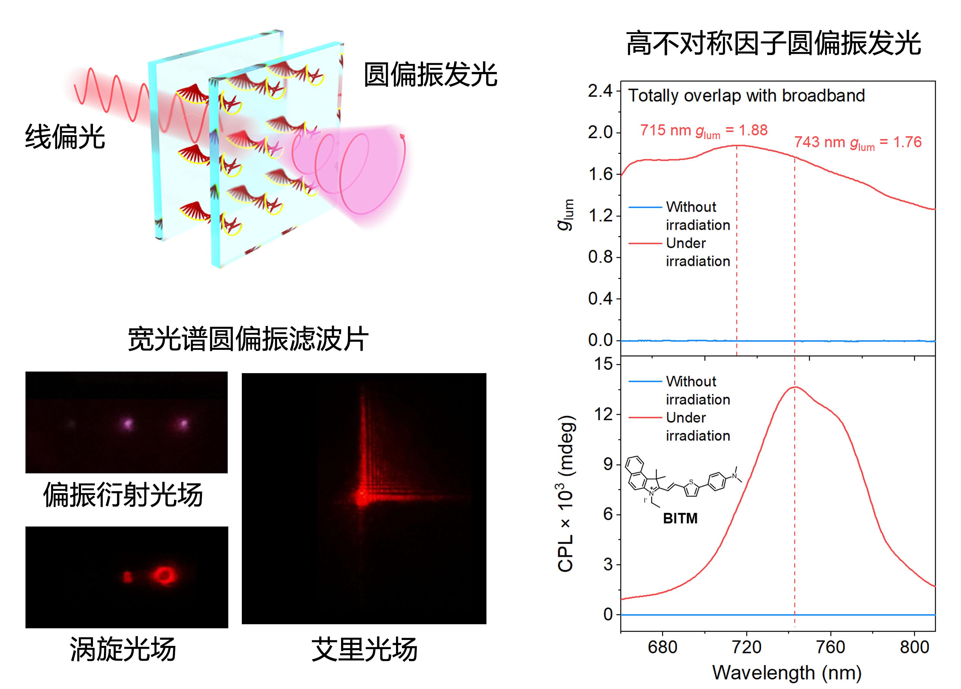 两类创新性应用:glum高达1.88圆偏振发光和宽光谱光场调控