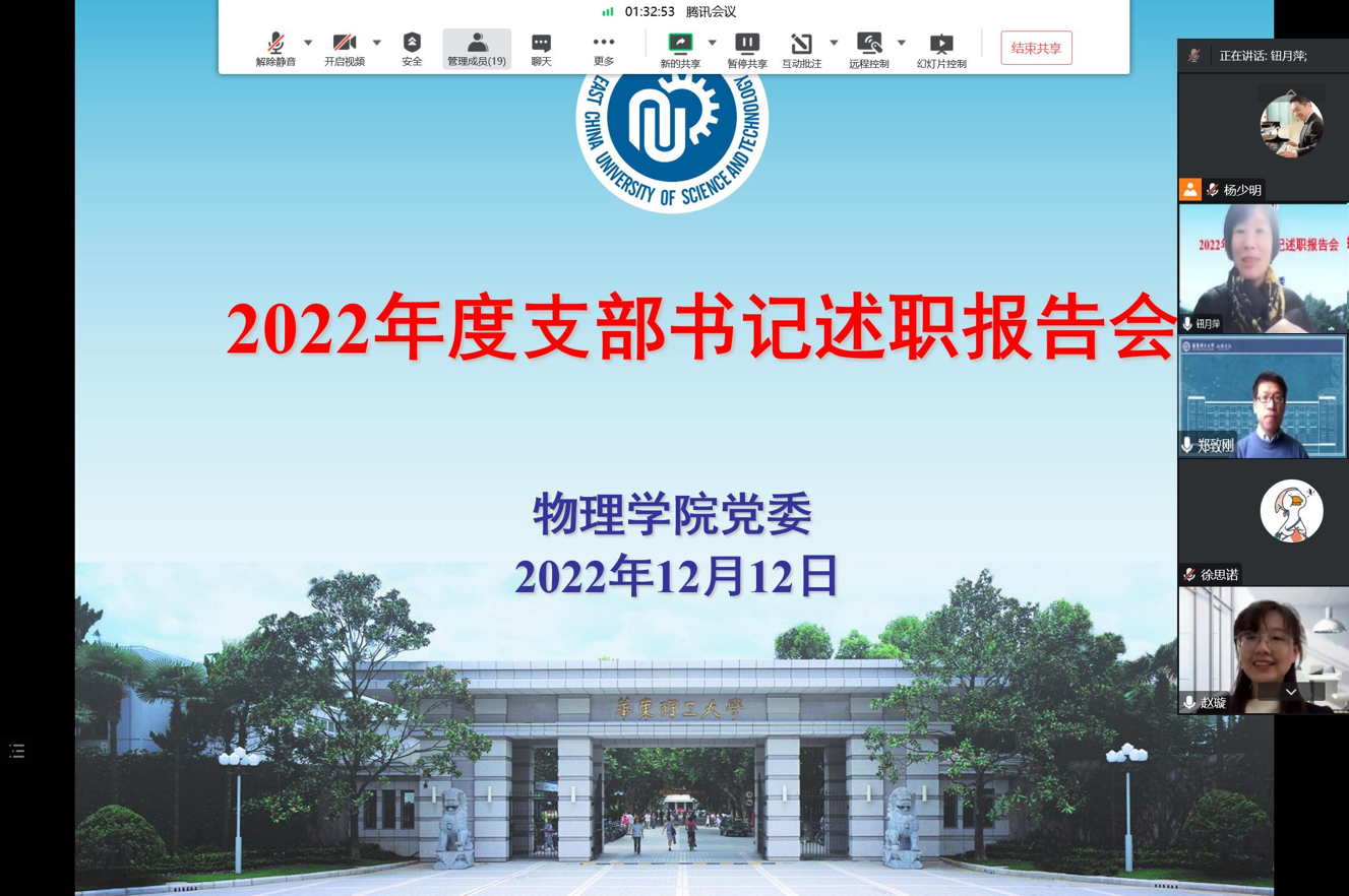 为深入学习贯彻落实新时代党的建设总要求,进一步加强基层党组织建设,12月12日下午,PP电子官方网站党委召开2022年度支部书记述职报告会。院党政班子成员、党委委员、支部书记、党员代表等近20人参加会议,听取工作汇报并进行现场测评。会议由院党委书记钮月萍主持。
