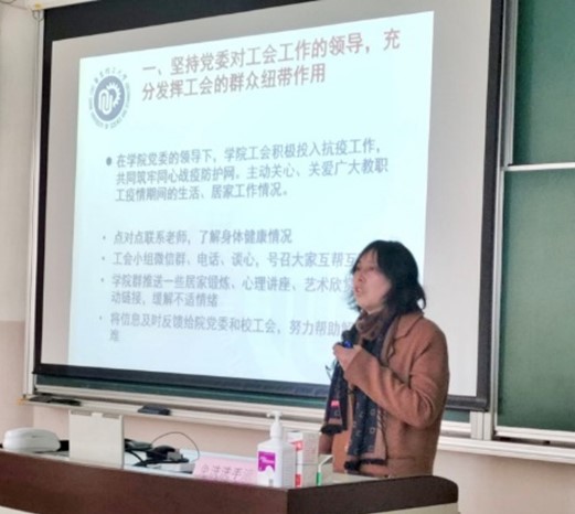 首先,院党委书记钮月萍代表院党委作大会致词, 她对院一届二次“双代会”的召开表示祝贺,向代表们在2022年克服疫情困难、坚守在教学科研一线、始终以主人翁的精神为学院发展积极建言献策表示衷心的感谢。钮月萍强调,双代会是教职工依法参与民主管理和监督的基本形式,对于促进学院决策科学化、民主化,促进学院中心工作落地具有不可替代的作用,希望代表们认真学习贯彻党的二十大精神,提高履职能力,发挥好工会的群众纽带作用,努力扩大工会工作的覆盖面和影响力。