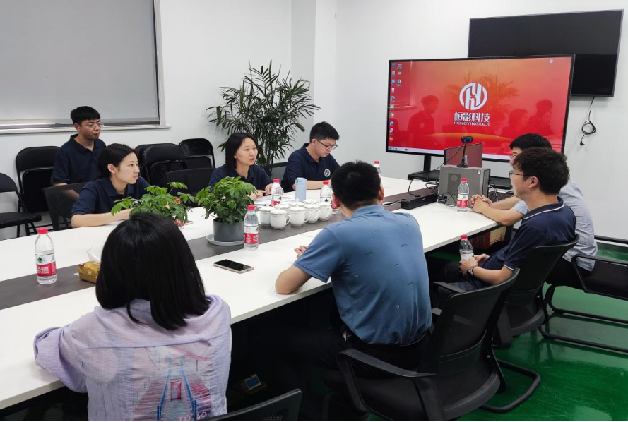 在杭州恒影科技有限公司,张阳总经理为团队成员介绍了公司科技产业的创新情况,带领成员认识了解决我国半导体产业卡脖子问题的关键应用——红外光学元件。冉博也表达了学院希望与恒影科技保持密切的交流与合作,并推荐了应届毕业生进企实习。