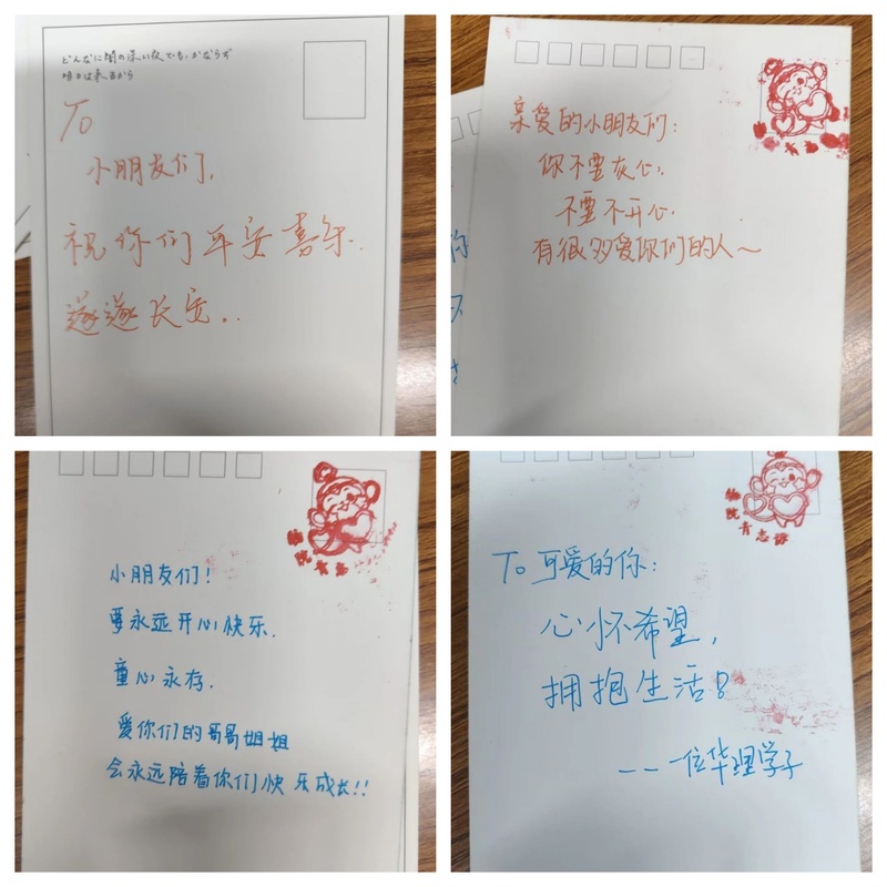 "亲笔书情意,远寄心中情" ,一张张名信片,从华理到湛蓝,给与湛蓝天使最诚挚的祝福与关怀,如同一颗颗小小的幸福种子,在社会传递着温暖与感动。小小的善意,也能发出光芒,只要我们团结一心,共同点燃星星之火,就可创造一个温暖而持久的世界。