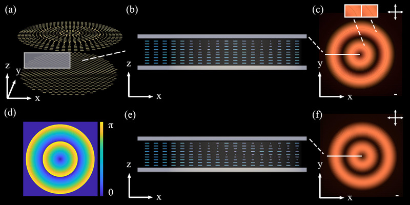 利用应力控制缺陷线,生成连续的扭曲结构,其液晶层参数满足摩根条件时,表现出旋光性,应用于宽波段矢量光生成器。矢量旋光覆盖从可见光到近红外的宽波段,使出射光具有任意设计的柱对称连续变化电矢量分布。