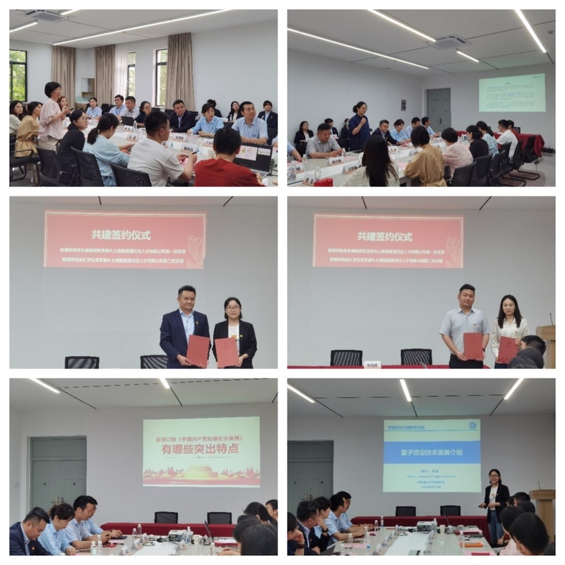 签约仪式后,双方进行了党纪学习教育联学活动。上海临港漕河泾人才有限公司第一党支部宣传兼纪检委员、党群办公室总监助理王征峰和与会党员分享了对最新版《中国共产党纪律处分条例》修订的理解。袁媛就对方感兴趣的《2024上海量子科技产业发展白皮书》进行了解读,介绍了量子通信、量子计算和量子测量等的基本原理、发展优势和产业现状。