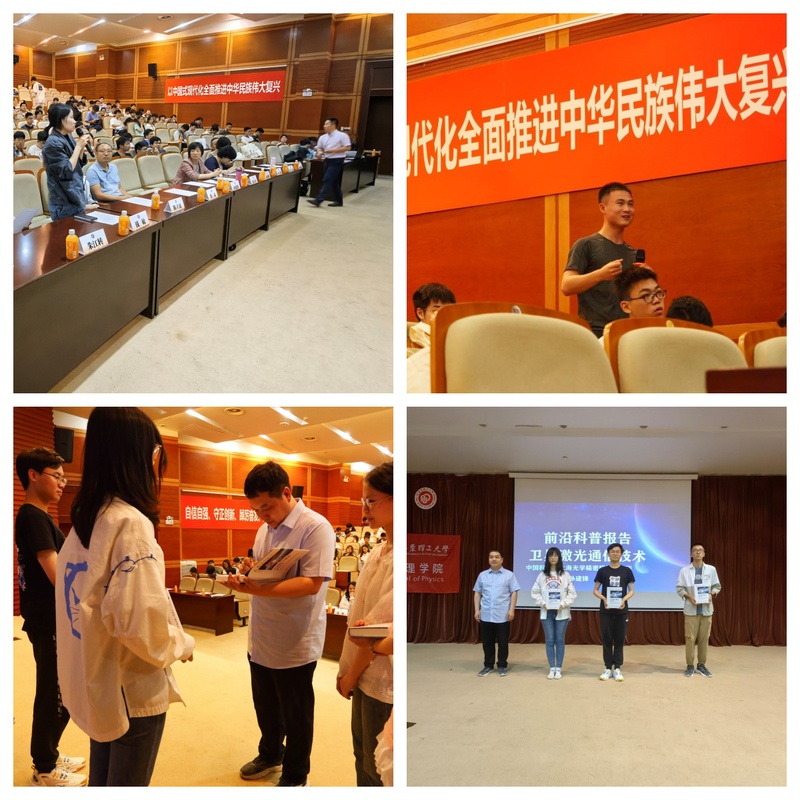 6月11日下午,“悟理拾光”——第一届物理文化节闭幕式暨颁奖典礼在华东理工大学奉贤校区敬贤堂隆重举行。中国科学院上海光学精密机械研究所孙建锋研究员应邀出席,并带来“物理大家说”——《卫星激光通信技术》前沿科普报告。PP电子研究生工作部庞祎晔、上海应用技术大学理学院团委书记陈立富受邀到会。PP电子官方网站党委书记钮月萍,副书记冉博,副院长张孟,党委委员钱敏、许飞,教师朱云霞、朱江转,团委书记杨少明,辅导员何宇瑶及200余名本硕学生共同参会。闭幕式由PP电子官方网站2022级本科生段崴主持。