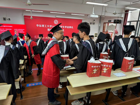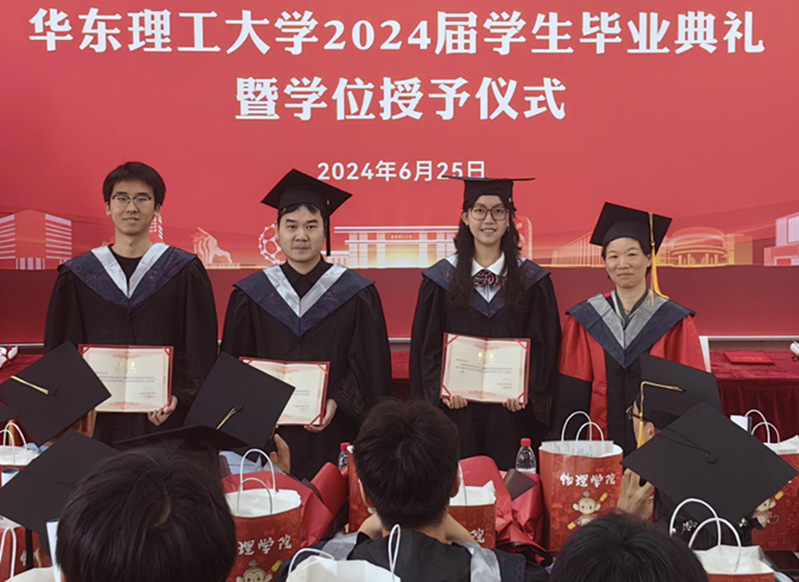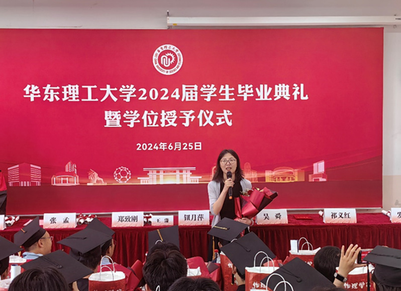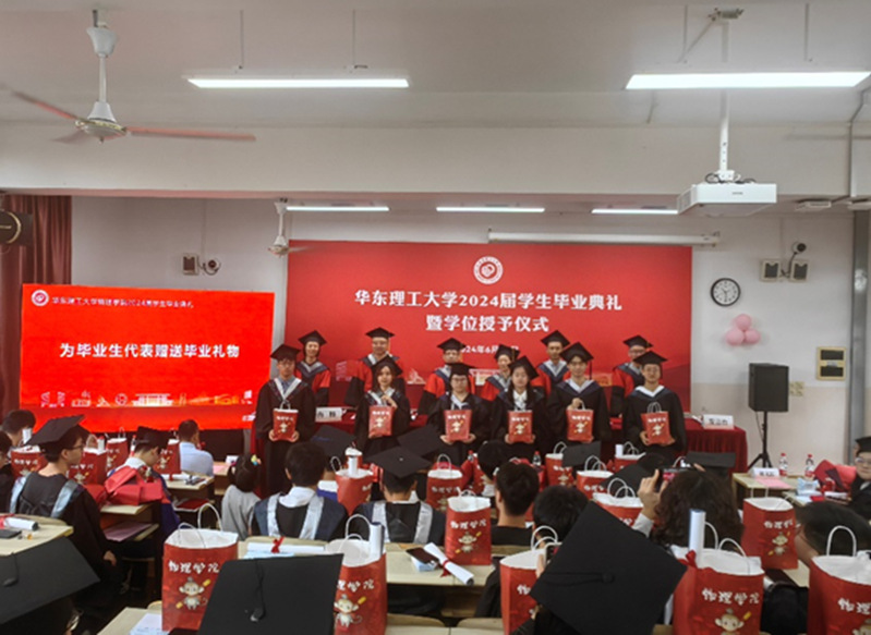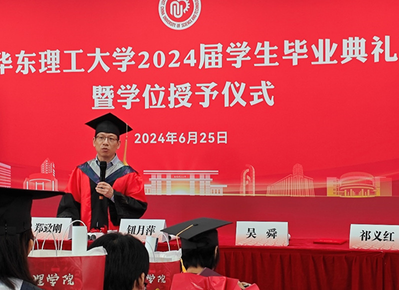 6月25日,PP电子官方网站2024届学生毕业典礼暨学位授予仪式在七教210教室举行。华东理工大学党委副书记沈海涛,PP电子官方网站党委书记钮月萍、院长郑致刚、院党委副书记兼纪委书记吴舜、院党委副书记冉博、副院长张孟、光电信息科学与工程系主任祁义红、班导师许飞、教师代表王潇、辅导员何宇瑶、杨少明及2024届全体毕业生出席。同时到场的还有学生家长们,同学们取得的成绩离不开他们二十载的悉心教育与陪伴,这一刻,家长将和同学们一起翻开人生下一个精彩篇章。典礼由学院党委副书记冉博主持。