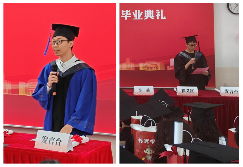 “绳短不能汲深井,浅水难以负大舟”,研究生毕业生代表黄旭锋发言,感谢学院让自己学到了过硬的本事,才能在未来的社会上立得住脚跟,抓得住机会。本科生毕业生张启抟同学代表同学向辛勤付出的老师们表达了感谢。他表示,在大学四年里,他不仅仅学到了深奥的专业知识,更重要的是培养了批判性思维和解决问题的能力,这些重要的品质将伴随同学们一生。