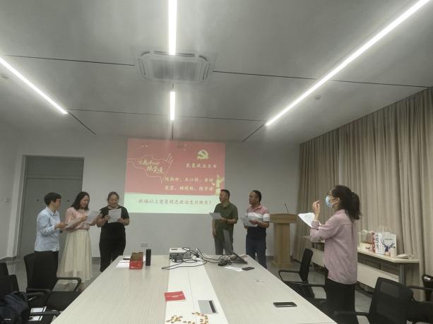 此外,还为6、7月份入党的梁莹、陈勤妙、顾晓艳等六位老师举办了集体“政治生日”活动,与党共同过生日的党员们深情朗读了诗歌《我是共产党员》,表达自己立足岗位做贡献、创先争优当先锋的责任和担当,展现了作为一名中国共产党党员的骄傲与自豪;随后全体党员面向鲜红的党旗集体宣誓,再次接受入党誓词的洗礼,进一步坚定理想信念,不忘入党的初心使命。
