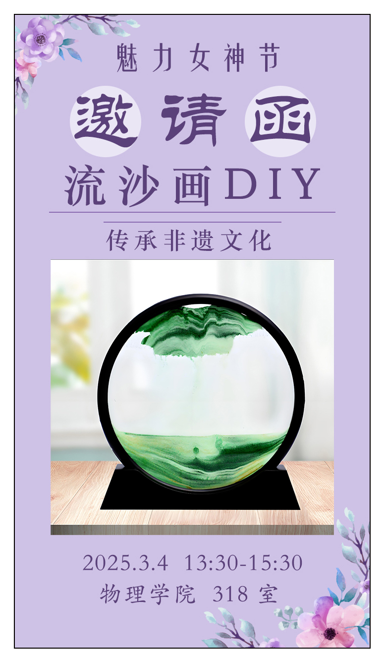 八”国际妇女节庆祝活动。活动内容为流沙画DIY,届时邀请专业人士现场指导,旨在让大