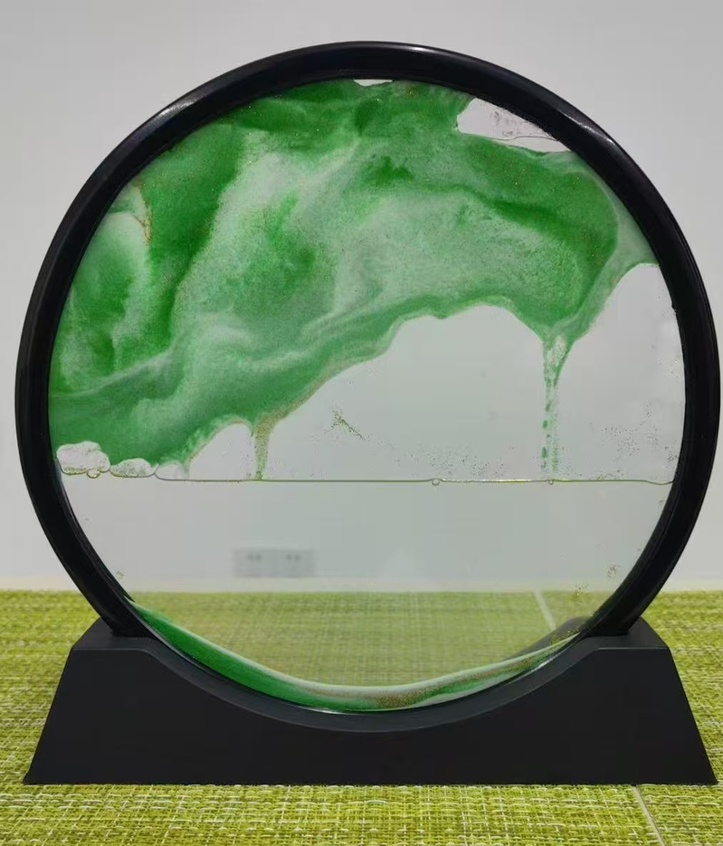 活动现场,专业老师首先向大家展示了流沙画的成品,是一幅绿意盎然、如潺潺流水般的森林秘境。旋转沙盘,氢化铝和磨刚沙在甘油中浅浅流动,气泡缓缓上升,画风变得更灵动生气。这其中蕴含的物理原理,如粘滞力、浮力与重力平衡的知识,物理教师们都太熟悉了,但如何将科学知识转化为如画美景,还要考验大家的动手能力和艺术创造力!
