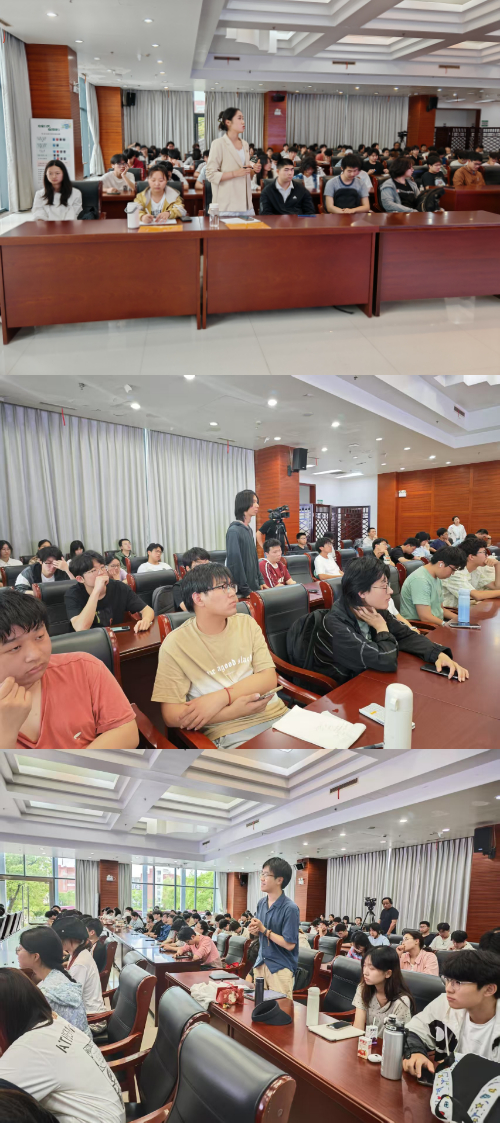 报告结束后,同学们向张强教授请教了诸多感兴趣的问题,包括量子世界与宏观世界的关系、超视场微小物体的分辨、经典世界Bell不等式的验证等内容,张强教授深入浅出地为同学们一一做了详细解答。