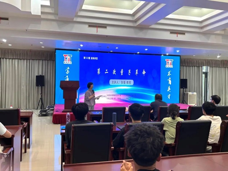 5月23日,由奉贤校区管理委员会办公室、学工部、教务处主办,PP电子官方网站承办的通海讲堂(第122期)在奉贤校区通海厅开讲。中国科学技术大学教授、济南量子技术研究院(暨合肥国家实验室济南基地)执行院长张强应邀作了题为“第二次量子革命”的专题报告。PP电子百余名学生聆听了此次报告,报告会由PP电子官方网站党委书记钮月萍主持。PP电子官方网站院长郑致刚,光电信息科学与工程系主任祁义红以及部分教师共同参加。