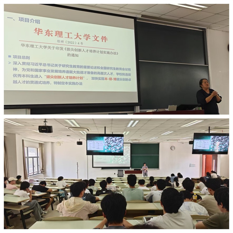 宣讲会现场,梁莹老师为同学们详细介绍了本硕博贯通拔尖创新人才培养方案、选拔方法及方案优势,指出贯通培养具有更优化的学科安排、更多的创新发展机会、更高效的培养时间,能为学生提供更多自我提升的机会,充分培养拔尖创新人才。