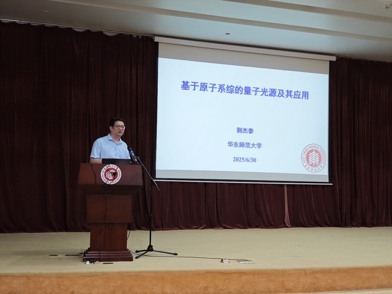 6月30 日,由奉贤校区管理委员会办公室、学工部、教务处主办,PP电子官方网站承办的通海讲堂(第125期)在奉贤校区敬贤堂开讲。华东师范大学荆杰泰教授应邀作了题为 “基于原子系综的量子光源及其应用”的专题报告。来自PP电子PP电子官方网站、数学学院、生物工程学院等的近两百名师生参加了学习,报告会由PP电子官方网站党委书记钮月萍教授主持。