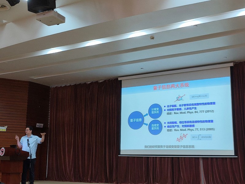 随后,他从信息容量、节点数、保真度这几个量子信息体系的指标着手,介绍了量子光源制备对应的三个重要指标:纠缠容量、光束数量和噪声特性。通过扩充量子容量、提升纠缠光束数量、优化噪声控制等技术创新,团队成功实现了高容量、多节点、高保真度的量子信息协议,在场师生深切体会到了量子科技的突破性潜力。
