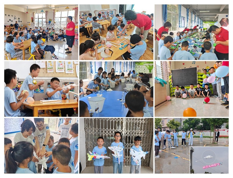 “探理启梦”实践团走进仁德四小和当地暑托班,让物理知识跳出课本的束缚,带着小朋友们在动手实践中触摸科学的温度。活动现场,小老师们精心设计了气球静电悬浮、简易电路搭建、动力小车竞速、飞机模型组装飞行等多个互动实验。在气球静电实验中,孩子们看着彩色气球神奇地悬浮在空中,纷纷发出惊叹;电路搭建环节里,大家相互协作,当小灯泡成功点亮时,脸上洋溢着成就感;而飞机模型组装与试飞活动更是将气氛推向高潮,孩子们在操场上遥控飞行、追逐着自己组装和涂鸦的飞机,校园里充满欢声笑语。活动结束后,实践团为表现突出的学生准备了“小小科学家”奖状及科学实验装置盲盒,鼓励他们保持对科学的好奇心。
